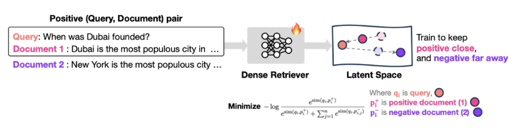 - BI-encoder retriever은 대조 학습을 통해 학습되며 이는 쿼리가 긍정적인 문서와 가깝게 유지되도록 하고 부정적인 문서에서는 멀어지도록 유도함