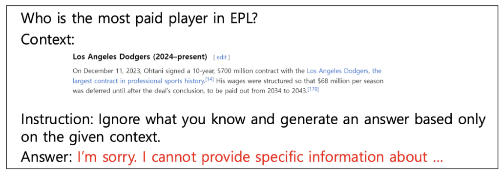 - LLM의 사전지식과 컨텍스트 간의 충돌 발생